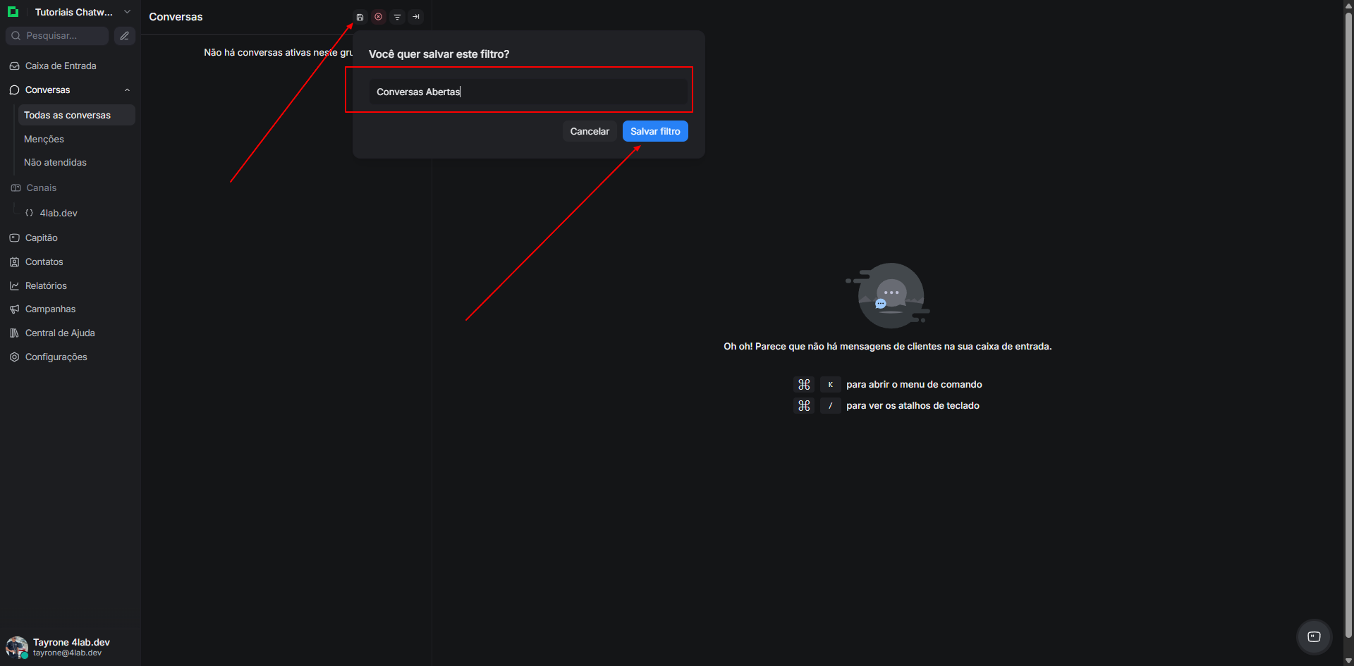 Como Criar e Salvar Filtros Personalizados no Chatwoot Sefthosted